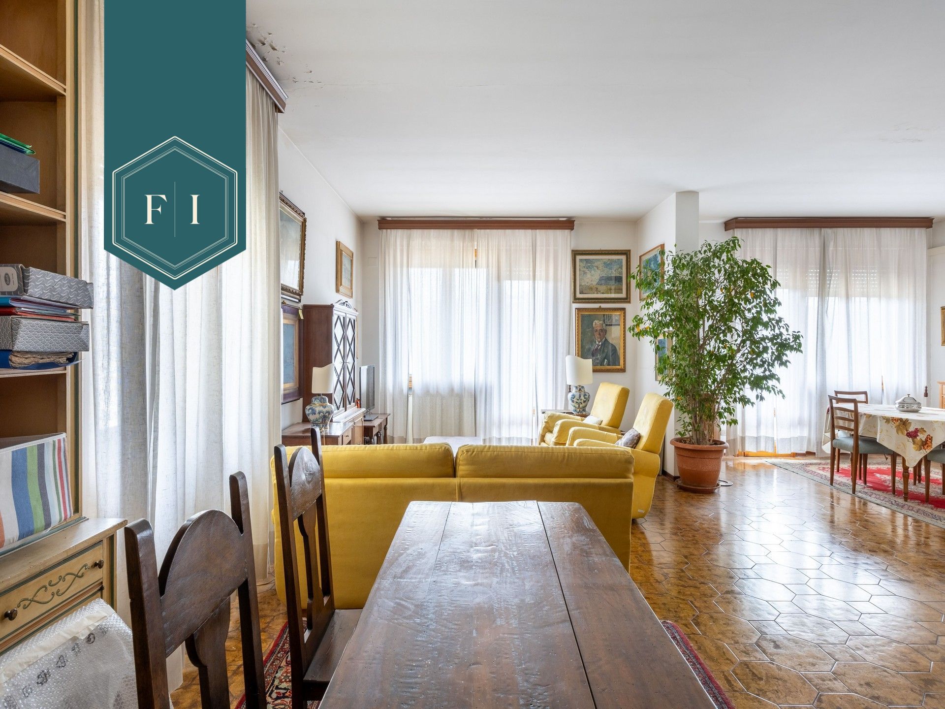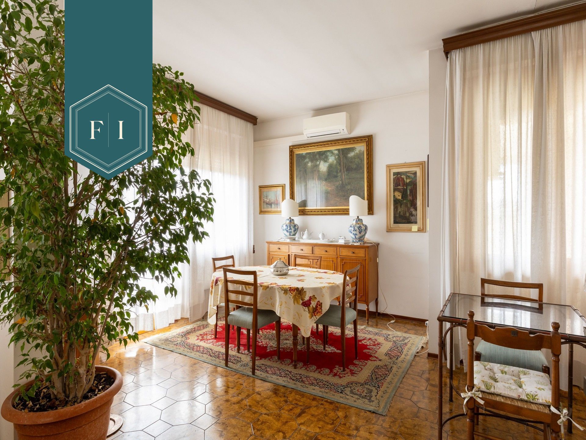 Soffiano, in contesto residenziale tranquillo, vendiamo bell'appartamento di circa 185 mq posto al quinto e ultimo piano, con ascensore, di un condominio degli anni '70. L'appartamento si presenta in buone condizioni ed è composto da grande salone con camino, sala pranzo, cucinotto, 4 camere e 2 bagni finestrati. I due balconi, frontale e tergale, offrono un bel panorama sulle colline circostanti. All'esterno il condominio offre una piscina, un campo da tennis e giardino a verde. Il tutto fruibile dai condomini. Inoltre la proprietà include un garage di circa 40 mq.
